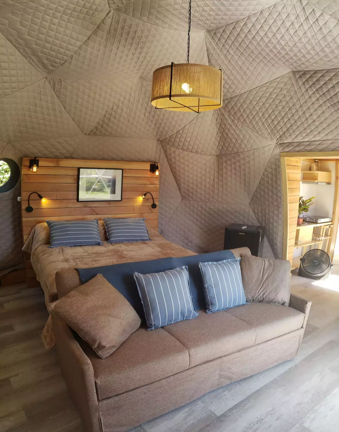 Las personas llegan a Villa Traful atraídas por el paisaje, la naturaleza en pleno esplendor. Millones de años de glaciares, volcanes, movimientos tectónicos y sistemas atmosféricos crearon esta obra, que disfrutamos hoy. En nuestro tiempo la experiencia de vivir la naturaleza se ha transformado en una necesidad que excede al descanso, al placer, a la interrupción de la rutina. Entramos en otra dimensión. En los Domos el límite entre el paisaje y nuestro refugio se diluye, seguimos viendo y escuchando al entorno y nos entregamos a la contemplación compartida con algunas personas que amamos, ese es nuestro objetivo en Vulcanche. Sumado a ello, detalles de confort. Un espacio para disfrutar, relajarse y sentir hasta qué punto estas experiencias nos invitan a crecer, pensar, sentirnos un poco más libres.